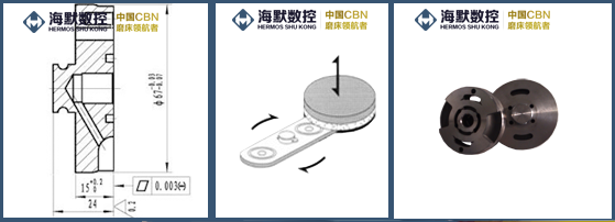 汽車轉(zhuǎn)向泵目前已經(jīng)廣泛應(yīng)用于轎車、載重車、卡車等領(lǐng)域。轉(zhuǎn)向泵的作用是減輕駕駛員在打方向盤的力度。出油側(cè)板是轉(zhuǎn)向泵性能的關(guān)鍵零部件之一的側(cè)板起著重要的作用。在助力轉(zhuǎn)向泵泵側(cè)板加工中一般分為粗磨、精磨兩道磨削工序。海默單端面磨床為粗磨精磨一次完成,大大縮短了加工節(jié)拍。