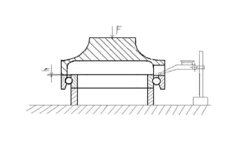(1)軸承內(nèi)圈放置在圓座上,在軸承外圈上放置加了重錘的套筒,然后測(cè)量軸承內(nèi)外圈的高度差(h),而重物F的大小一般有軸承規(guī)格決定。